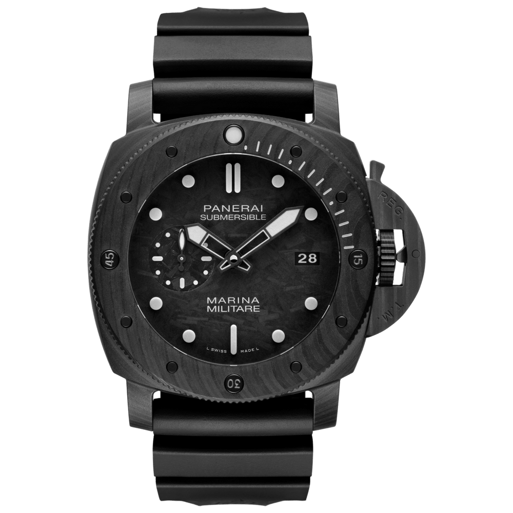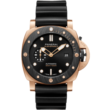 Submersible, el espíritu marino de Panerai, un explorador aventurero en su entorno natural. Diseño audaz, materiales de alta tecnología, gran resistencia al agua y bisel giratorio unidireccional.