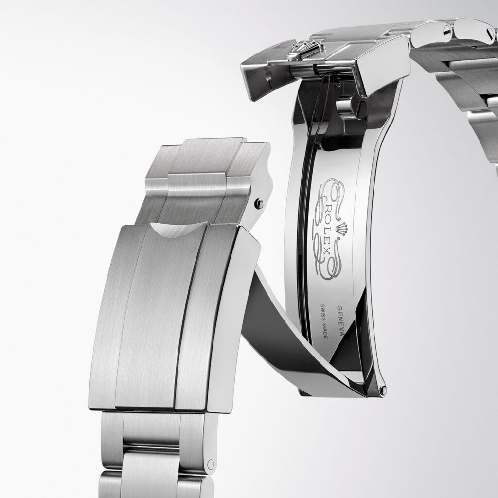 All three models are fitted with an Oyster bracelet, a three-piece link bracelet known for its robustness. Featuring the Rolex-designed and patented Oysterlock folding safety clasp, which prevents accidental opening, it is also equipped with the Easylink comfort extension link; developed by the brand, this allows the wearer to easily adjust the bracelet length by approximately 5 mm.