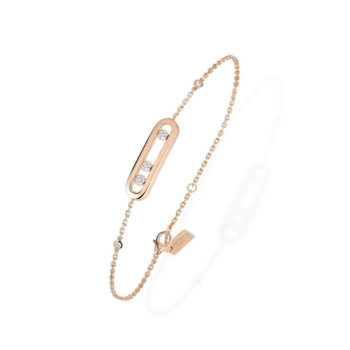 This 18-carat yellow gold pavé necklace, entirely handcrafted and set with three brilliant-cut diamonds of 0.08 ct each, is part of the Move collection, the emblem of the Maison Messika. The elegant setting of this pavé diamond necklace reflects the sunshine of the yellow gold of the pendant. This feminine jewel is distinguished by its modern design and the sinuous lines of its delicately pavé-set cage enhanced by its double chain. The movement of the three diamonds, a symbol of love from the past, present and future, embellishes at every moment the splendid interplay of these carefully selected stones. This luxury yellow gold necklace is a precious jewel that will add its dazzling touch to the most resolute style.
