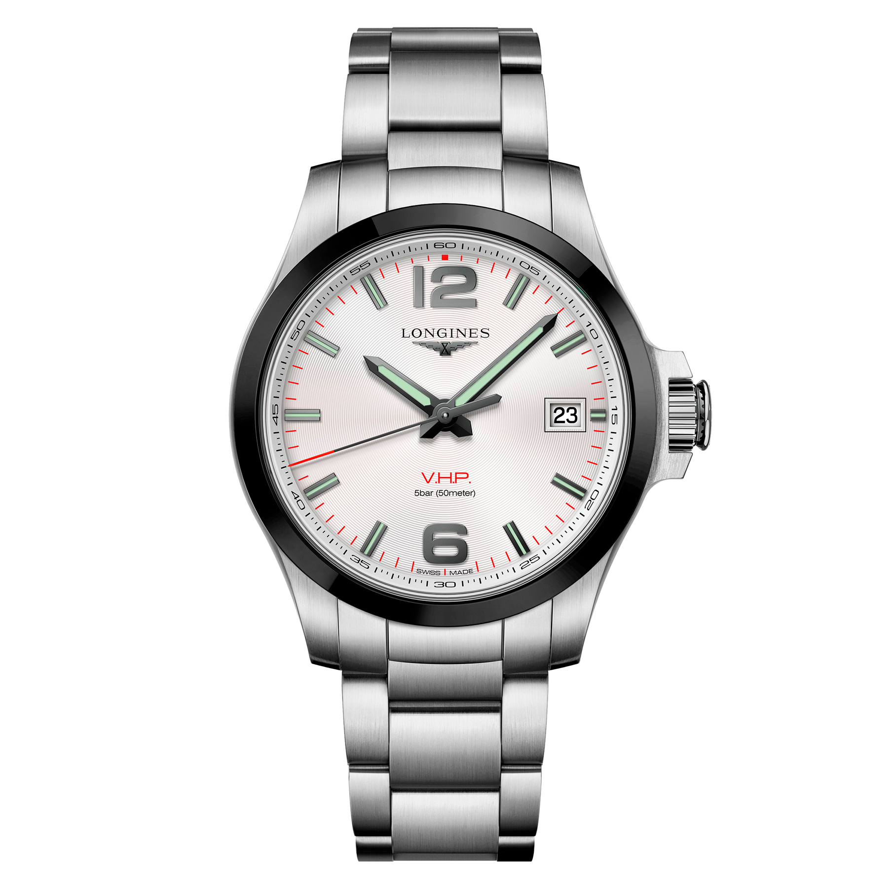 Conquest V.H.P. It is the most precise watch, combining high technology and a sporty spirit, with an ultra-precise quartz movement (± 5 s/year), DPR system, long-lasting battery, perpetual calendar and intelligent crown.