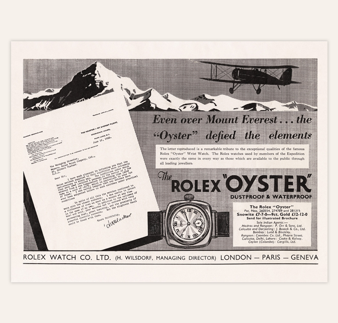 The Air-King symbolizes the privileged relationship between Rolex and flying during the golden age of aviation in the 1930s. It pays tribute to the pilots of the era and the Oyster’s role in their epic story. The 1930s was a period of spectacular progress in aircraft performance and led to the introduction of long-distance flights. Several pilots set records while wearing an Oyster. Others used a Rolex watch as an on-board chronometer, such as Owen Cathcart-Jones and Ken Waller, who, in 1934, made a return voyage from London (United Kingdom) to Melbourne (Australia) in record time with a twin-engine De Havilland Comet.