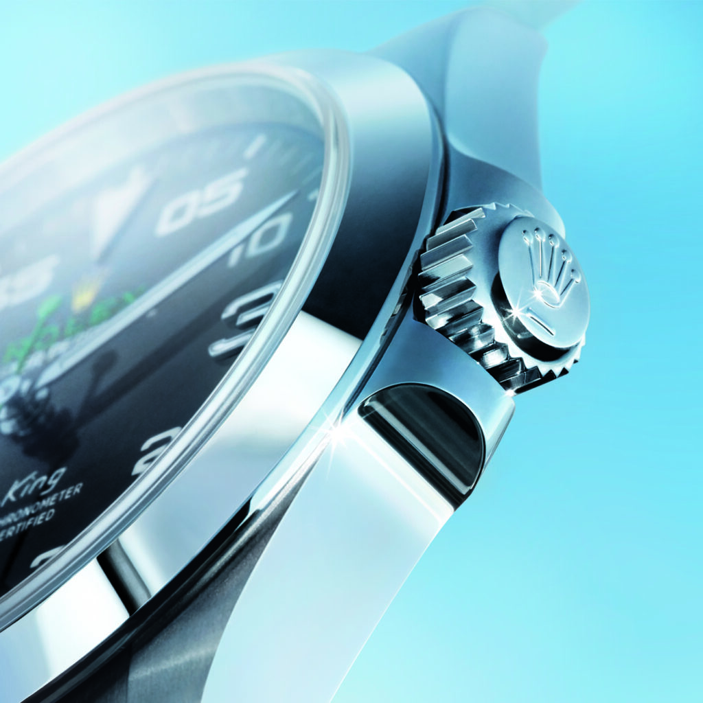 Like all Rolex watches, the Air-King is covered by the Superlative Chronometer certification. This designation testifies that every watch leaving the brand’s workshops has successfully undergone a series of tests conducted by Rolex in its own laboratories, according to its own criteria. The Superlative Chronometer status is symbolized by the green seal that comes with every Rolex watch and is coupled with an international five-year guarantee.