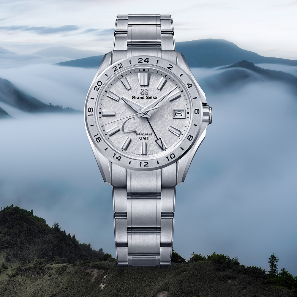 Este reloj Spring Drive GMT “para ir a cualquier lugar” se ve tan bien en la oficina como en casa, pero tiene una esfera inspirada en el paisaje donde fue creado. Tiene un patrón de superficie delicadamente texturizado que hace eco de la niebla de la mañana que envuelve las montañas de Nagano, el hogar de Spring Drive, en invierno.