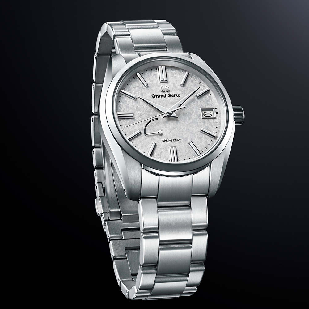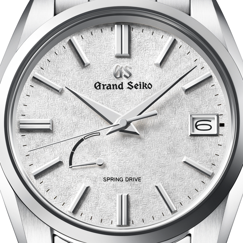 Poseedor del movimiento exclusivo Spring Drive de Grand Seiko. En la esfera se ve reflejado el invierno que llega repentinamente a Shinshu (taller donde se elaboran los movimientos Spring Drive), y en donde la escarcha se forma por la noche en los árboles y por un momento brilla bajo el sol de la mañana