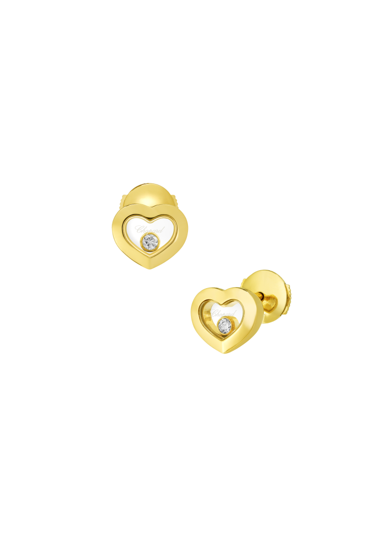 Los pendientes Chopard Happy Diamonds Icons están inspirados en la naturaleza, como el agua resplandeciente que bailando baja junto con la luz del sol en una cascada. Los pendientes de lujo tiene un corte elegante en forma de corazón hecho de oro amarillo de 18 quilates, la característica distintiva de estos icónicos pendientes son los diamantes que se mueven libremente y que se encuentran entre un par de cristales de zafiro. Esta belleza crea una alegre y delicada cascada de luz. Little Diamonds Do Great Things