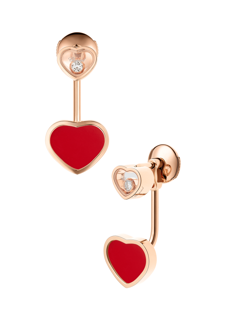 Chopard, la Maison de gran corazón, siempre ha considerado la generosidad y la amabilidad como sus valores fundamentales. Estos pendientes de corazón de piedra roja están hechos en oro rosa de 18 quilates. La combinación perfecta entre el talismán del corazón de Chopard y los icónicos diamantes danzantes de la Maison. Little Diamonds Do Great Things.