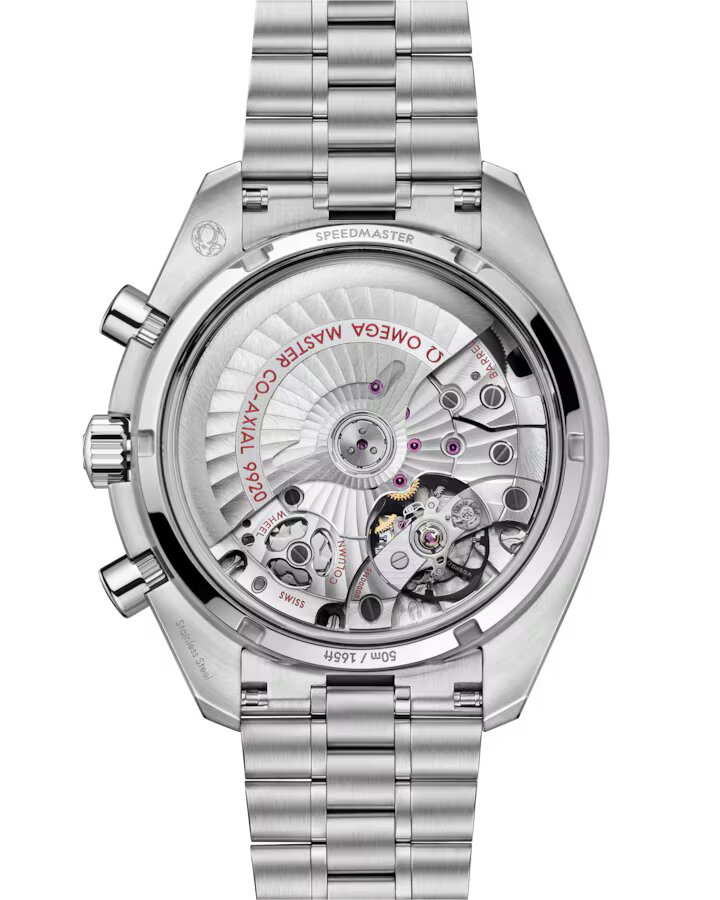 Este Speedmaster de 44,25 mm en acero noble es el primer reloj OMEGA que incluye el Sistema Spirate™, lanzado en 2023.