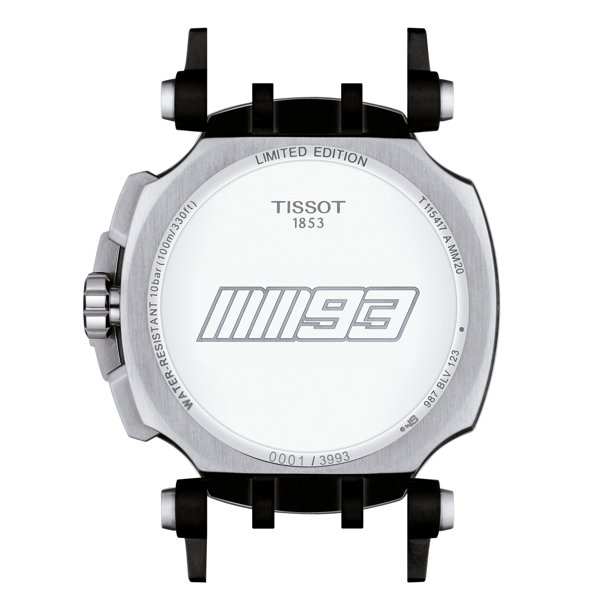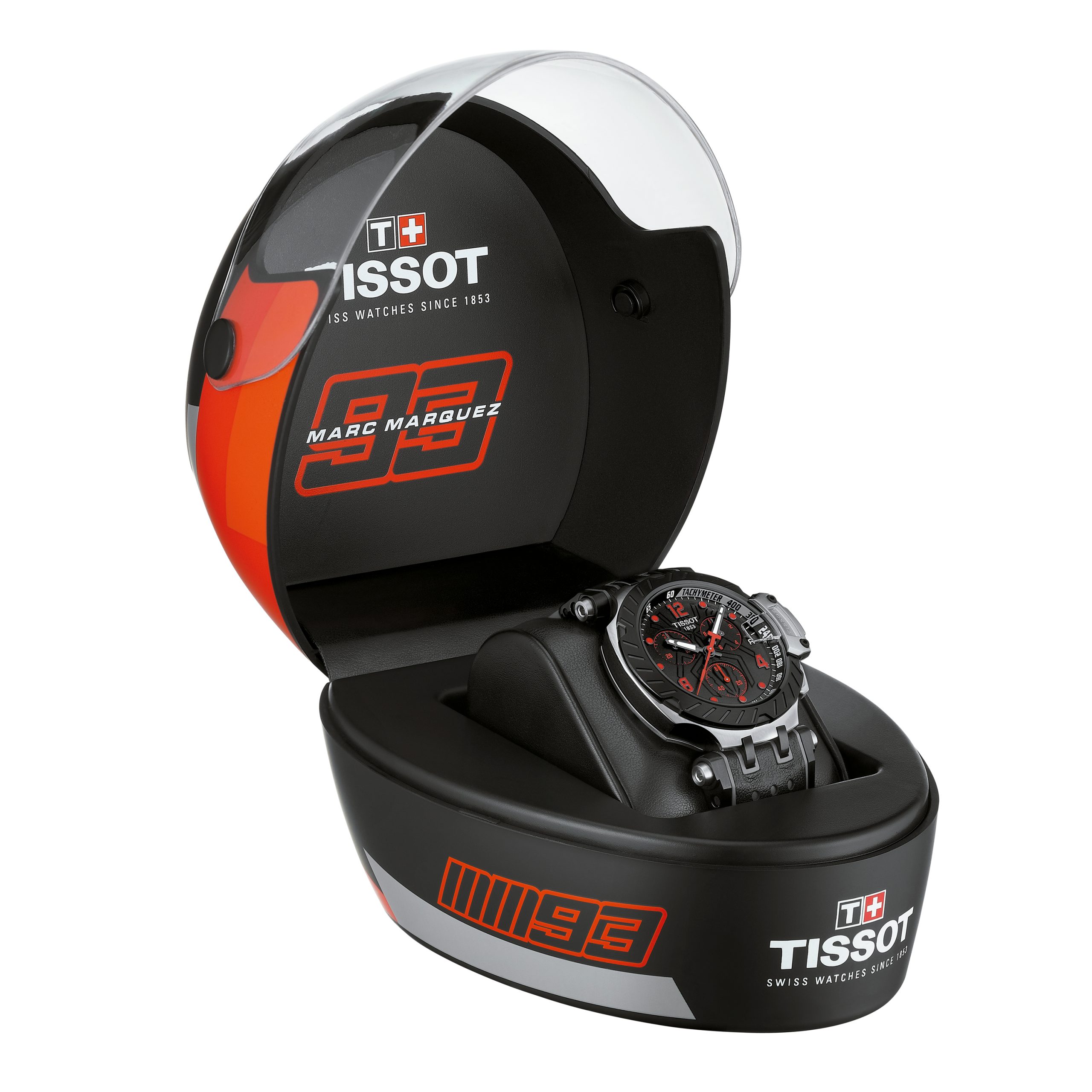 La nueva línea se mantiene fiel a la esencia del Tissot T-Race, con características inspiradas en la motocicleta. Cada detalle del reloj ha sido diseñado para reflejar lo mejor de nuestro embajador y para asegurar una legibilidad fácil y clara con SuperLuminova®. Una nueva esfera está adornada con el motivo de hormiga característico de Marc Márquez, una correa deportiva y técnica toma el código de color de Marc Márquez con caucho gris, cuero negro y costuras rojas. El logo “93” de Marc Márquez grabado en el fondo de la caja resalta los símbolos del corredor.