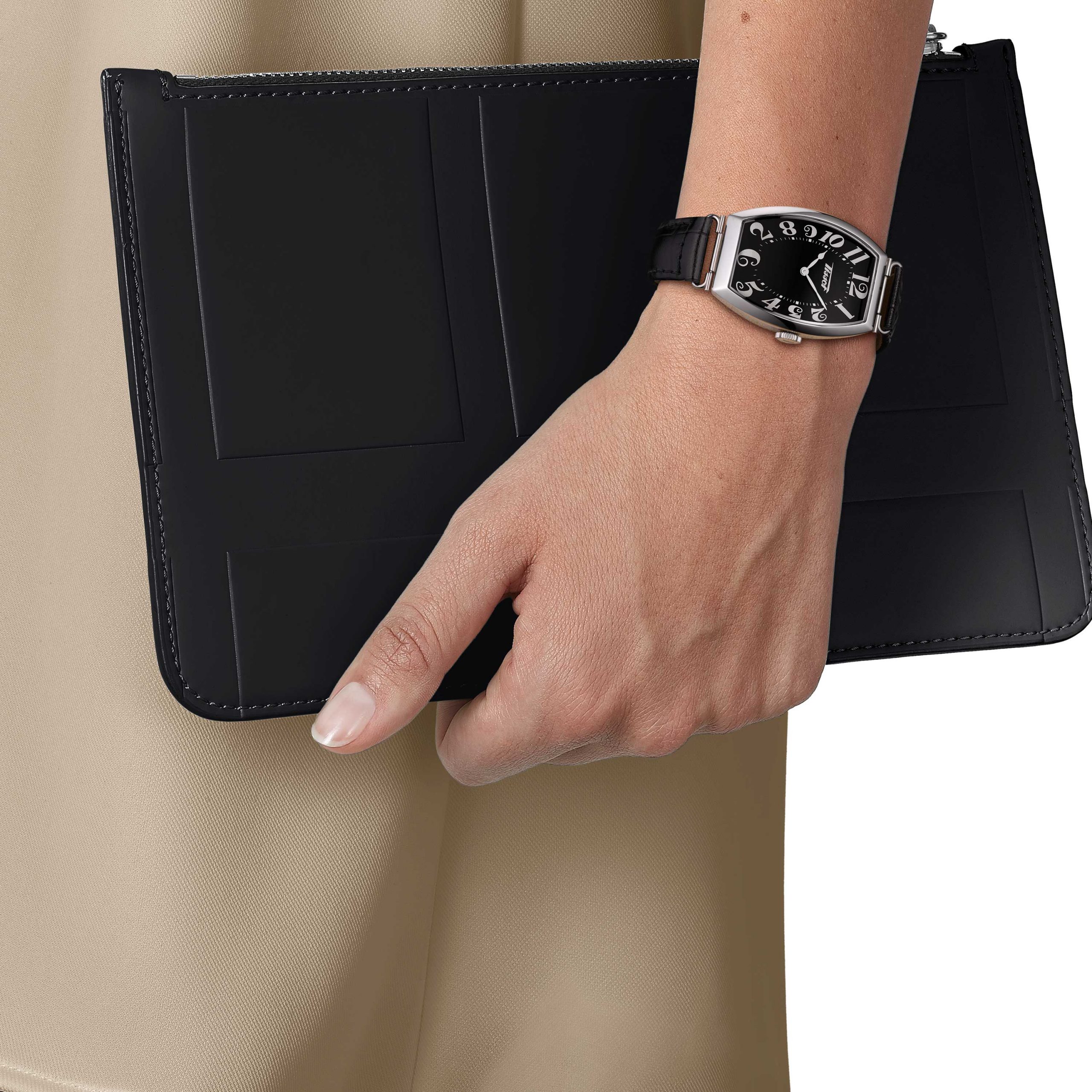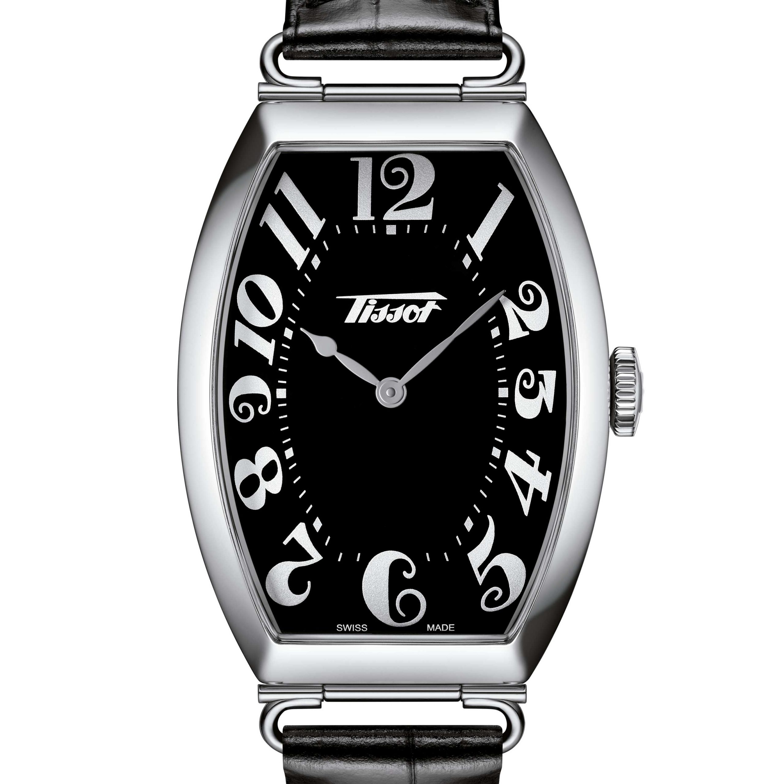 A pesar de su longitud, la caja curva rectangular enfatizada por un cristal de zafiro abovedado, se adapta perfectamente a la curva de la muñeca. Para recordar ese período de tiempo, los números de estilo Art-Nouveau embellecen el dial, así como las agujas en forma de pera y un pequeño segundo. Este reloj rinde homenaje a un reloj que estaba en la colección Tissot desde principios del siglo XX.