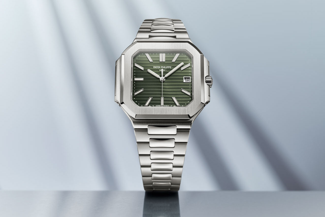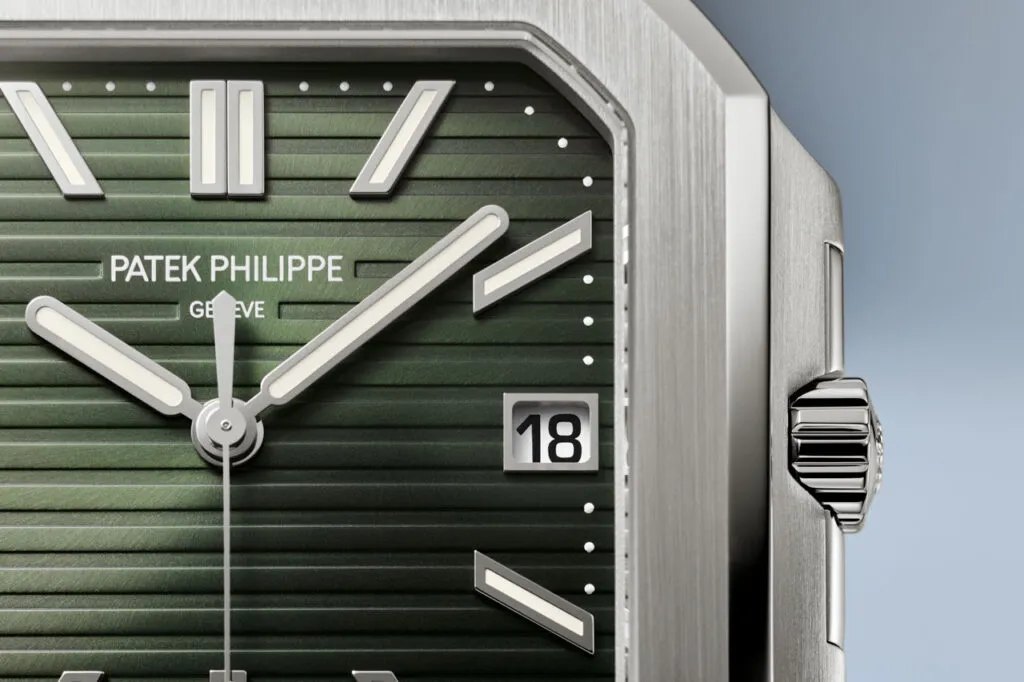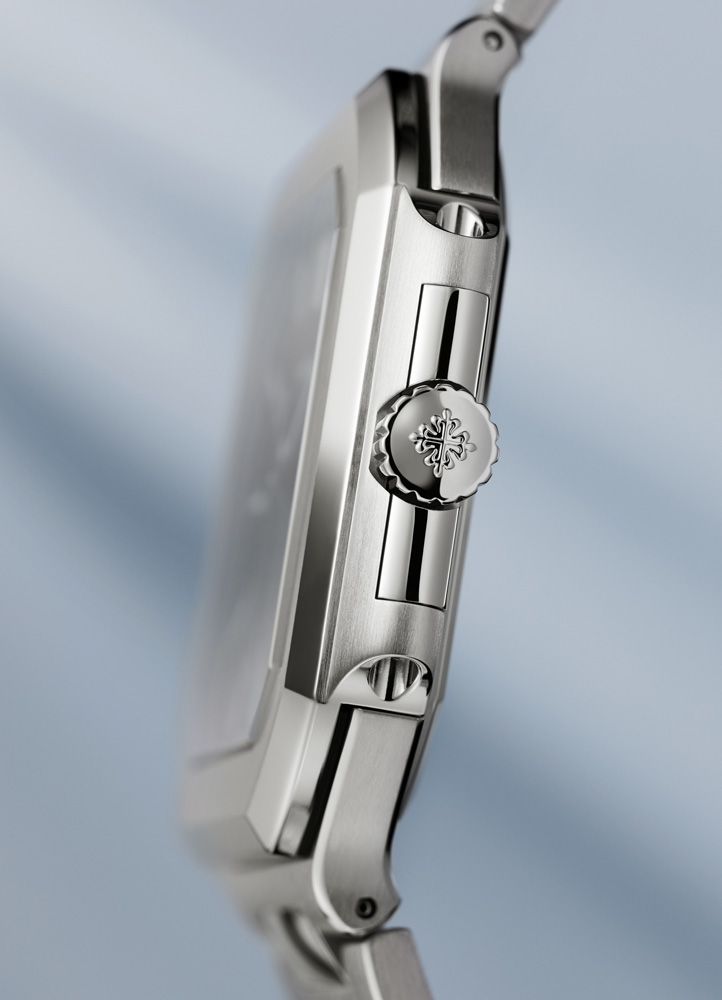 Patek Philippe reinventa el estilo “casual chic” en un nuevo modelo con un diseño moderno y distintivo realzado por la alternancia de acabados pulidos y satinados verticales. La nueva caja cuadrada con bordes redondeados se distingue por su elegante ajuste fino a la muñeca. La carátula con relieve horizontal presenta un elegante color verde oliva con efecto rayos de sol. El brazalete de acero está equipado con un sistema de ajuste con cerradura y un cierre desplegable patentado por Patek Philippe que garantiza comodidad y seguridad. En el corazón de este nuevo modelo late el calibre automático 26-330 S C con función de parada del segundero y rotor central de oro de 21 quilates adornado con el mismo motivo horizontal que el dial.