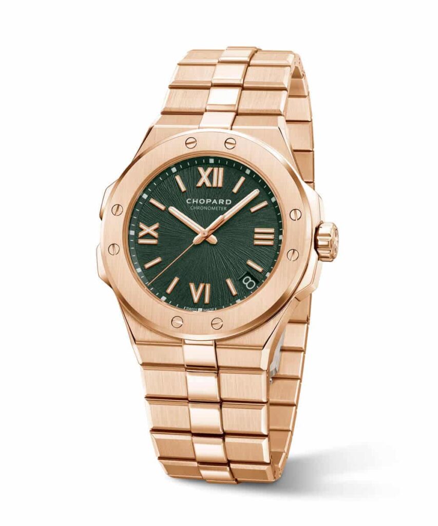 También hay una opción en oro rosa de 18 quilates. No te sorprenderá saber que el oro del Alpine Eagle, así como el de otros relojes Chopard, se funde internamente y es 100% ético.